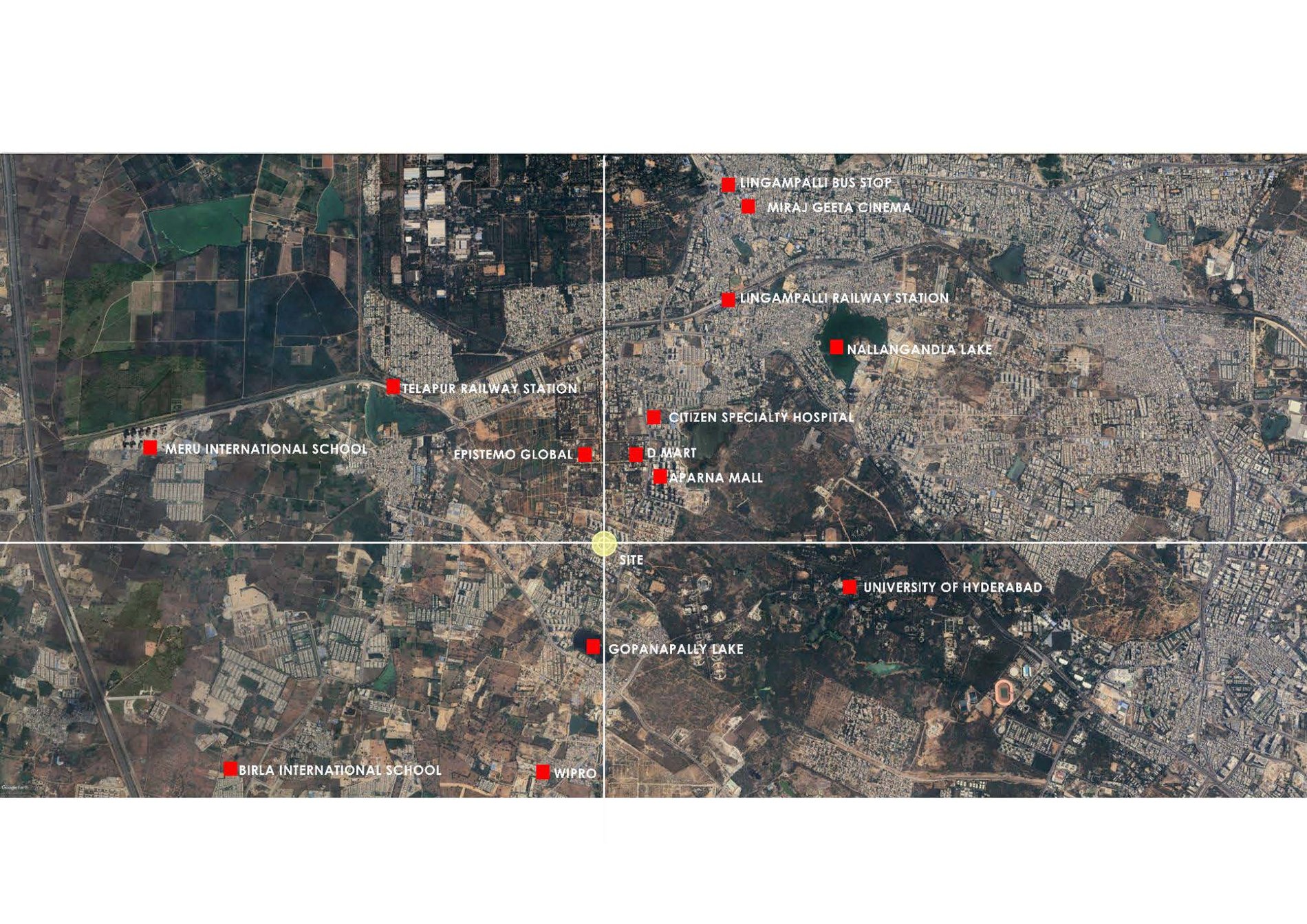 University of Hyderabad – 6.3 KM (12 Mins)Birla Open Minds International School –9.4 KM (20 Mins)
