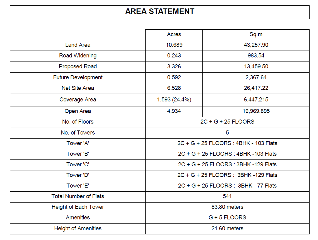 - Development Type : Independent Gated Community Residential Apartments